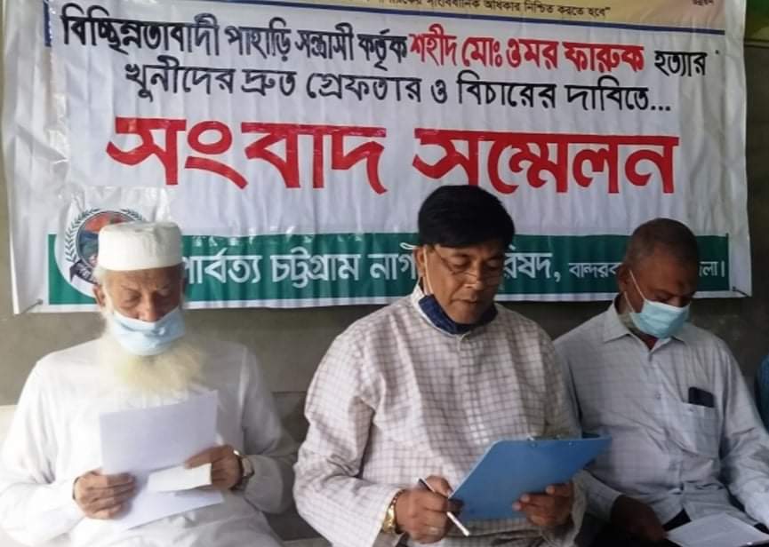 লিখিত বক্তব্যে পার্বত্য চট্টগ্রাম নাগরিক পরিষদের সভাপতি ও সাবেক জেলা আওয়ামী লীগ সাধারণ সম্পাদক কাজী মজিবুর রহমান বলেন, ওমর ফারুক হত্যার অর্ধমাস পেরিয়ে গেলেও এখনো পর্যন্ত হত্যাকাণ্ডে জড়িত খুনি গ্রেফতার হয়নি। সন্ত্রাসীদের শিকড় অনেক গভীর, হত্যাকারীদের এবং এই হত্যাকাণ্ডের সাথে জড়িত জেএসএস (সন্তু) লারমার সন্ত্রাসীরা ঘুরে বেড়াচ্ছে। এই অবস্থায় ওমর ফারুক হত্যাসহ পার্বত্য এলাকায় সকল সন্ত্রাসী কর্মকাণ্ড বন্ধে যৌথ অভিযানের দাবি জানানো হয়।